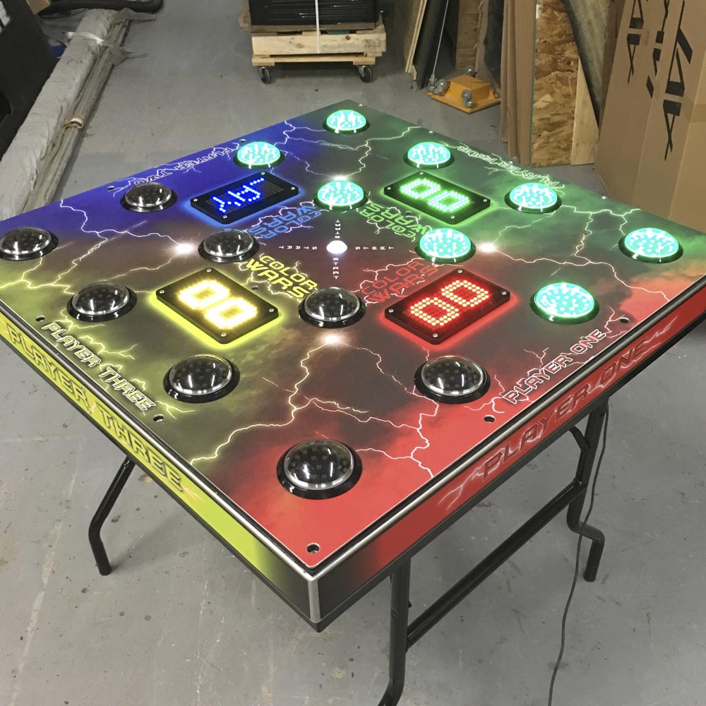 Color Wars combines the excitement of the Strike A Light reaction game with the twist of the lights being able to change color. Each player will try to hit lights corresponding with their color, which move around the board, creating chaos! Increase your throughput with 4 players in this adaptation.