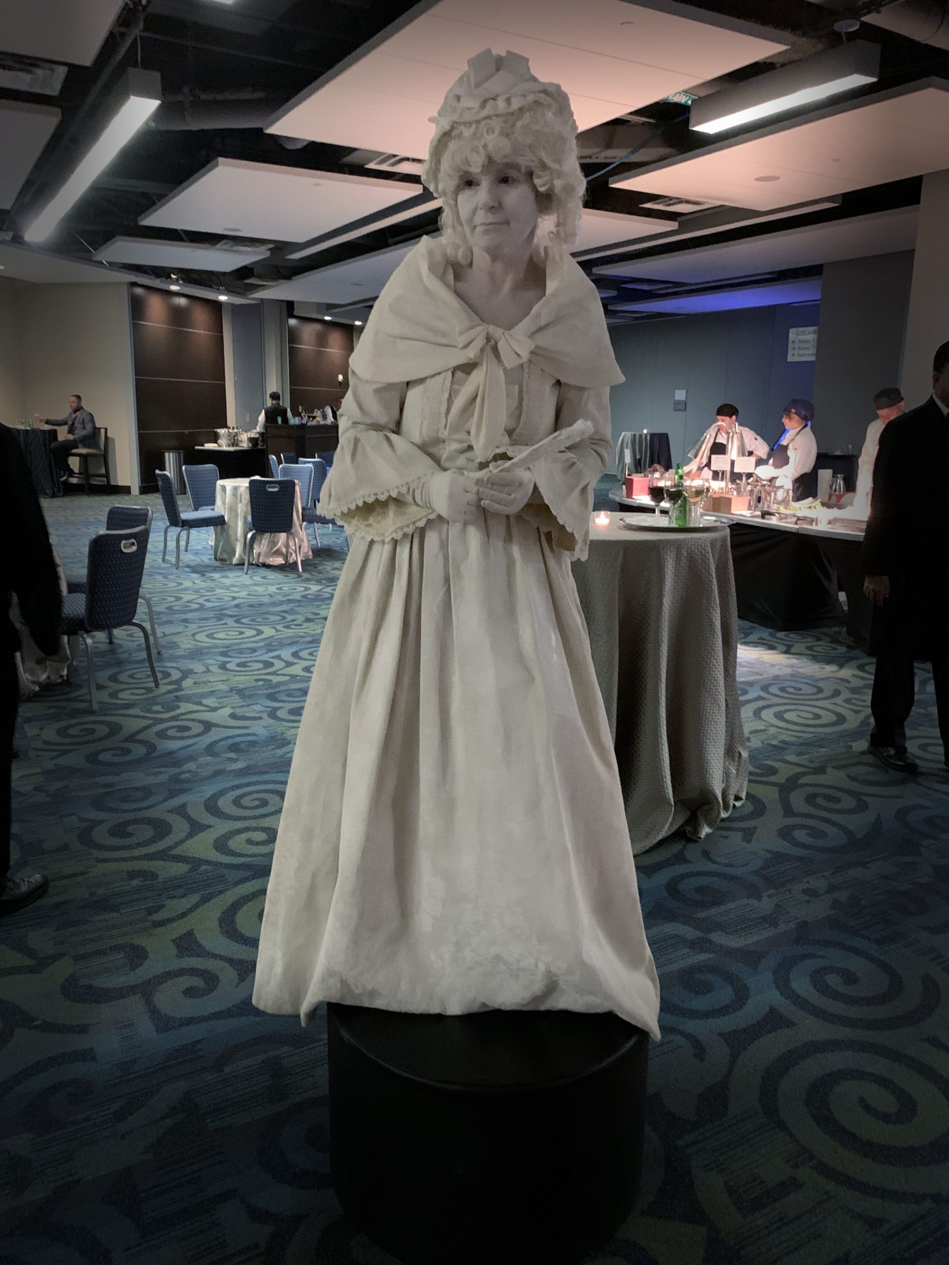 Our Living Statues will arrive at least a half hour prior to their start time with costume and any other equipment they need in tow. They can pose on a pedestal, on a table, on a stage, or just on the floor, indoors or outdoors.